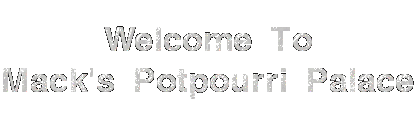 The Texas flag flies proudly, high over Mack's Potpourri Palace. Somewhere on the palace grounds there is something for you, on this family oriented site; applets, 106 links to great sites of all kinds, pet pages, music, art, love stories, poetry, links to friends, a true angel story, women's pages, and much more. There is a Table of Contents on the bottom of the page. |